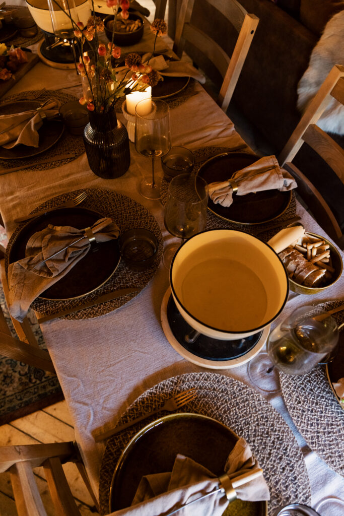 | Incl. – Alle garnituren voor de kaasfondue – 1 fles bijpassende wijn per 2 personen (keuze uit rode of witte wijn) – Tafel water – Dessert – Mooi gedekte tafel – Locatie kosten voor 4 uur incl. hout voor de houtkachel – Afwas |