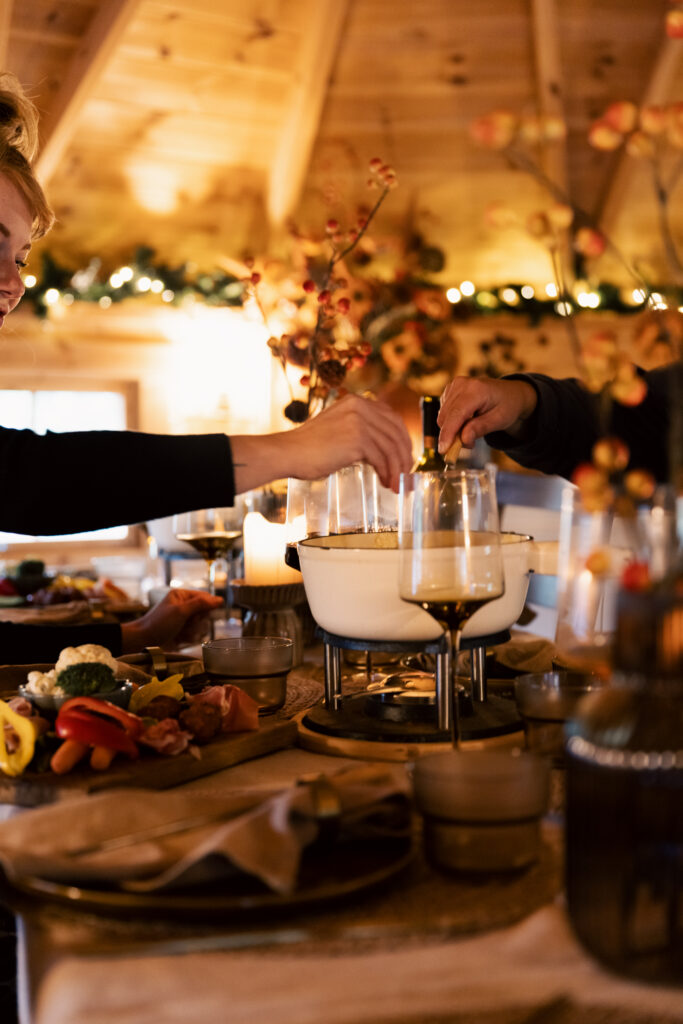 Bij dit arrangement schenken we een bijpassende wijn die perfect past bij de zachte, romige fondue. Daarnaast staat er tafelfwater op tafel.