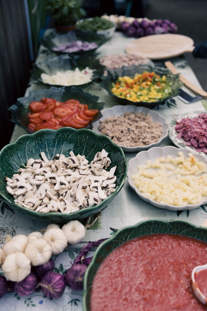 | Incl. – Pizzabollen – Meel voor het uitstrooien – Saus + kaas – Diverse garnituren (waaronder salami, ham, champignons, tomaat, paprika, ananas, uien etc.) – Servies – Locatie kosten voor 4 uur (overdekt zitten) |